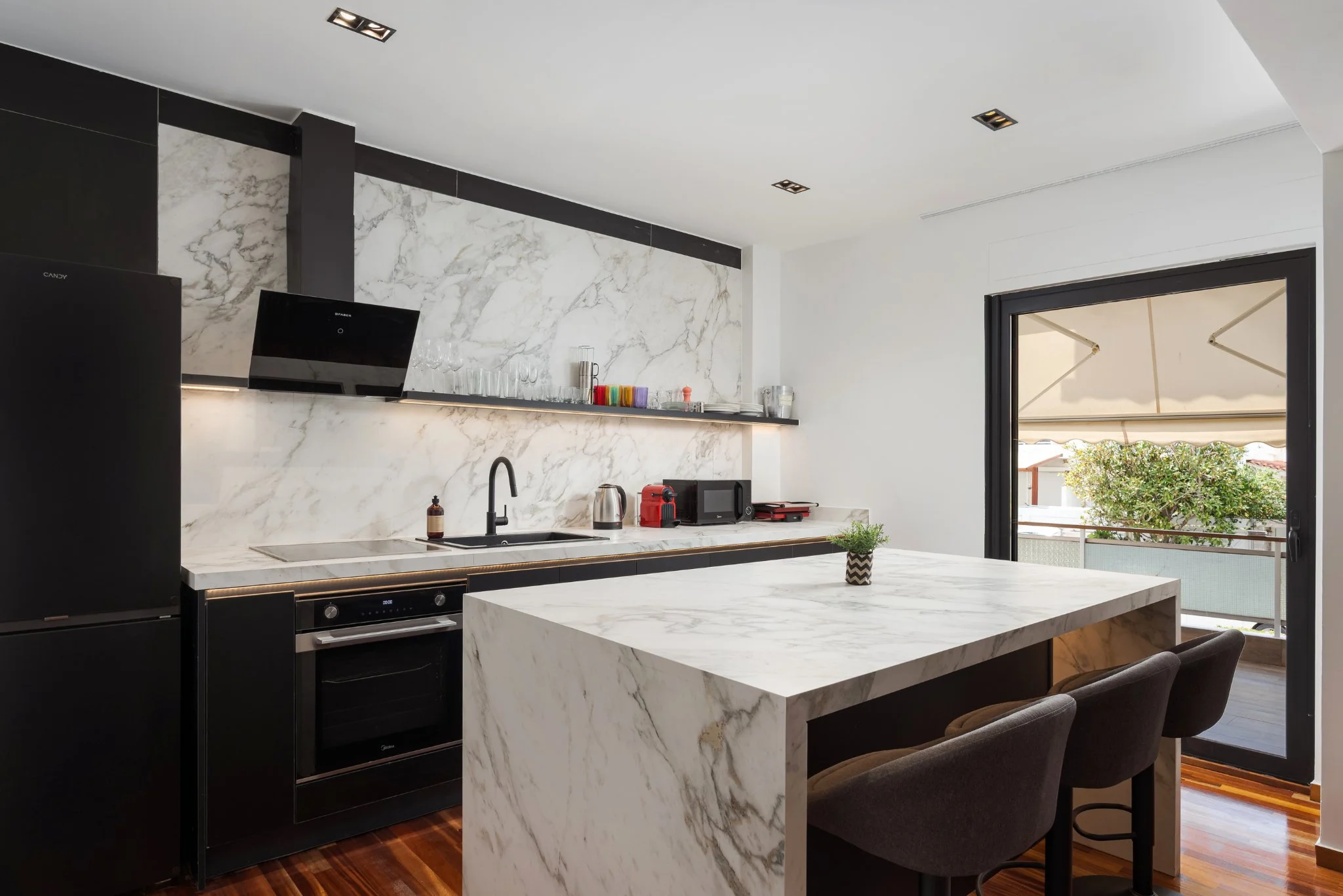 Step onto the private balcony to enjoy morning coffee or evening wine surrounded by the peaceful atmosphere of residential Glyfada.